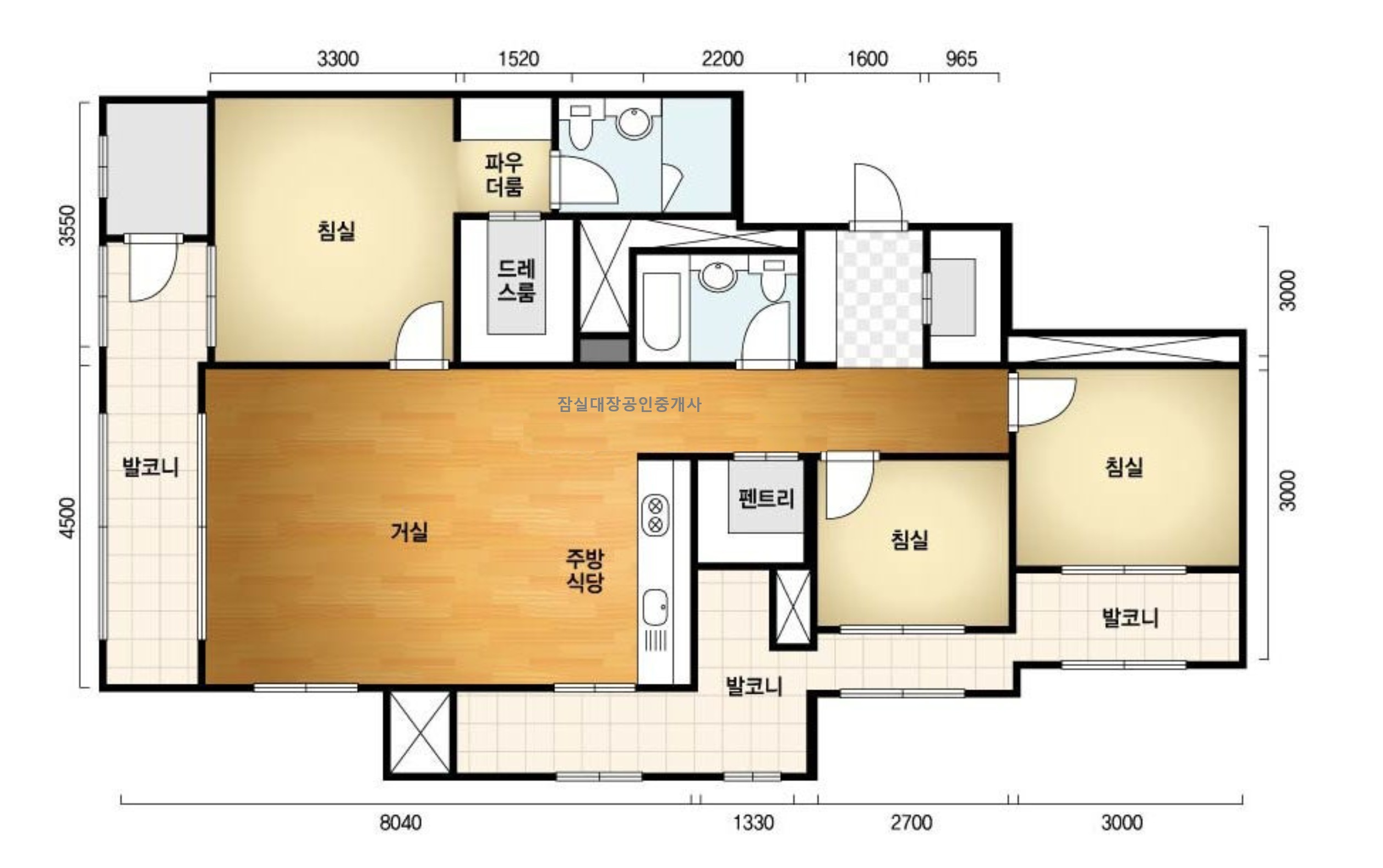 - 방3개 + 욕실2개 활용도 높은 공간 구성