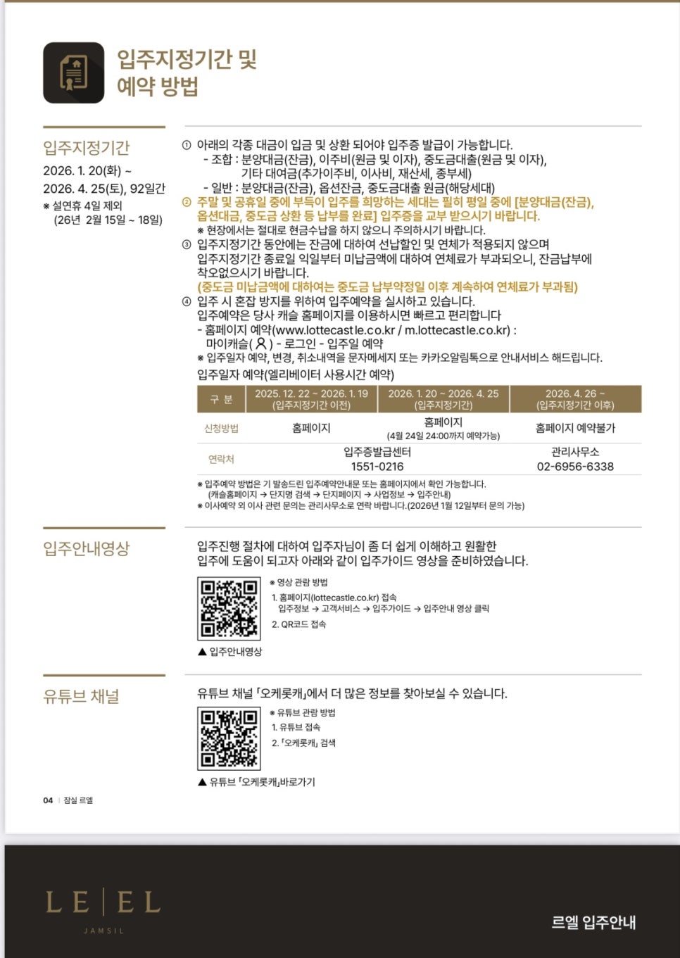 잠실르엘은 2026.1.20 (화) ~ 2026.4.25(토)까지 입주가 가능하세요.