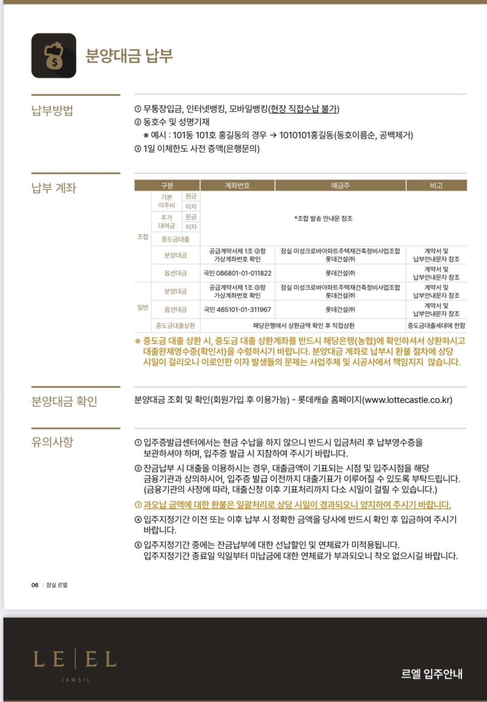 해당 기간안에 잔금납부 및 입주가 이루어지지 않을 경우 입주여부와 상관없이 아래의 대금을 납부하게 됩니다.