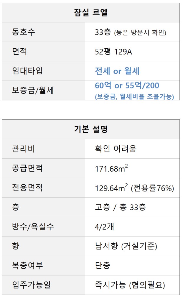 - 잠실·송파 고급주거 수요 네트워크 기반으로, 전세/월세 구조를 고객 상황에 맞게 정교하게 조율